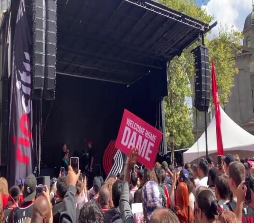 欢呼声很大!开拓者活动欢迎35岁利拉德回家杨瀚森和利指导抱抱